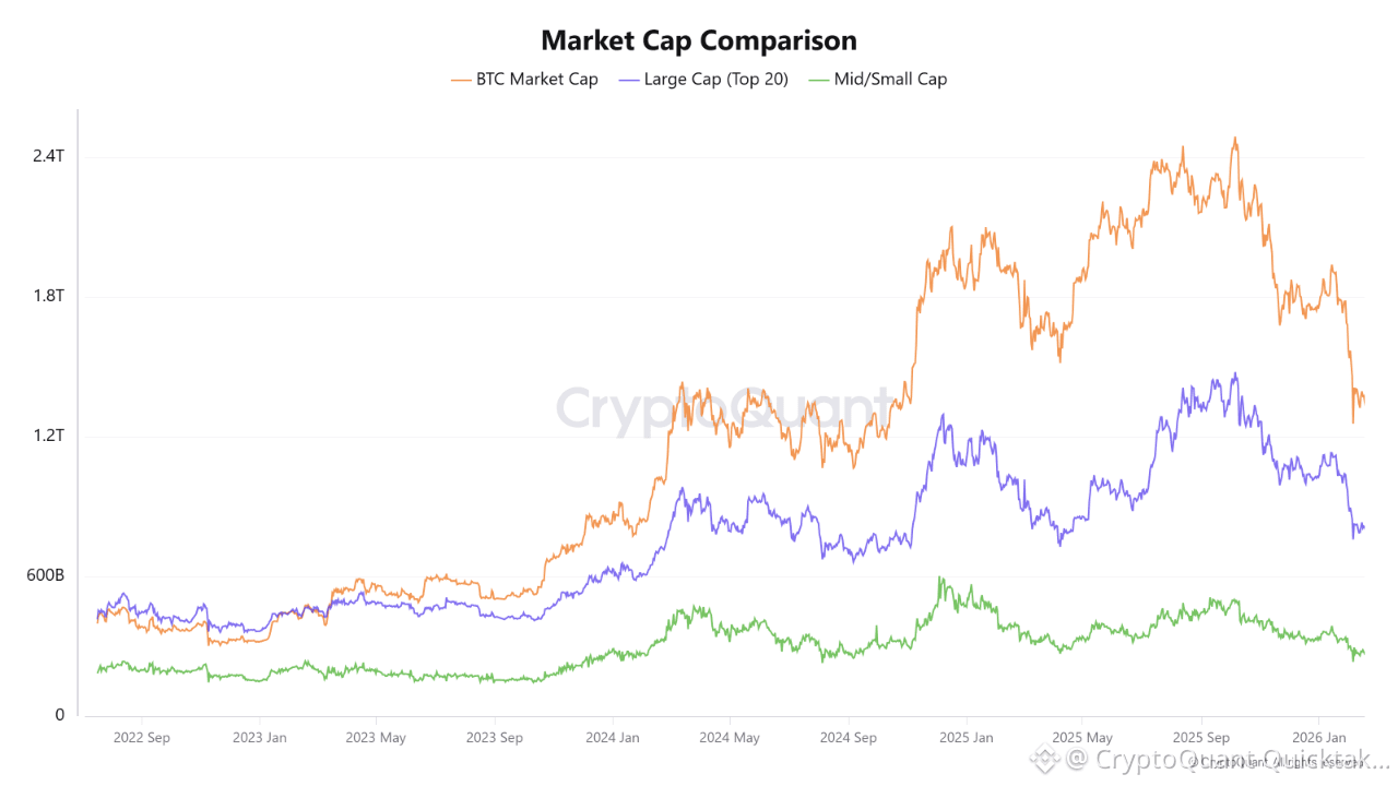 In just 100 days, the cryptocurrency market has erased more than $730 billion in value. What we are witnessing is an unprecedented short-term capital exodus, deepening the contraction of the crypto economy. Bitcoin alone, the ecosystem’s leading asset, is down $347.9 billion, while mid and small-cap altcoins are plunging at an even faster pace. More than a simple correction, the numbers reveal a true investor exodus in a classic risk-off move.