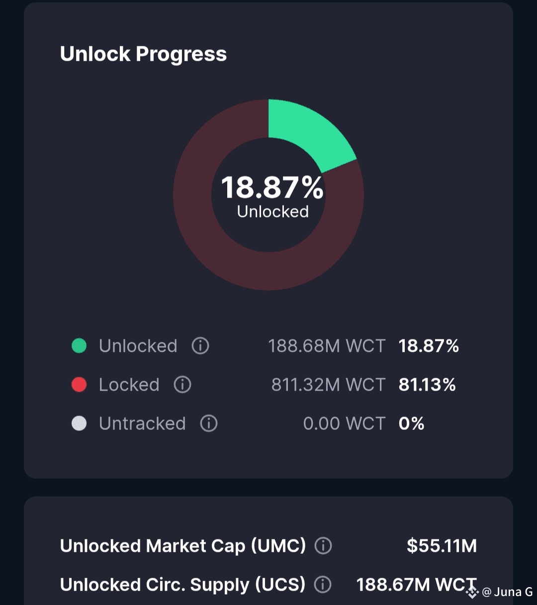 Right now, the market is only dealing with 18.87% of the total WCT supply (~188M tokens). The rest? Locked.81.13% (~811M tokens) is yet to enter circulation. This is a classic low-float, high-FDV scenario.