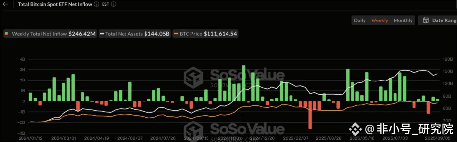 截止至发稿,美国比特币现货 ETF 累计总净流入约545亿美元,本周净流入 2.46亿美元;美国以太坊现货 ETF 累计总净流入约127.3亿美元,本周净流出 7.87亿美元。