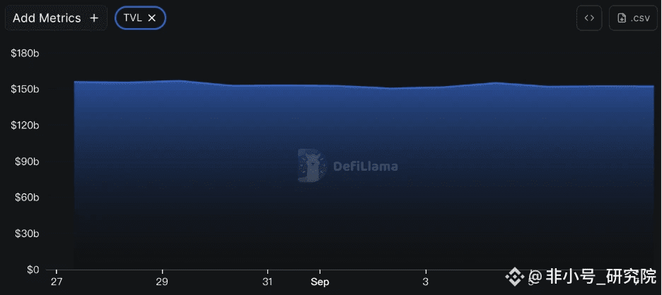 据 DeFiLlama 的数据,本周 DeFi 总 TVL 为$1,521亿,较上周 1,545 亿,下降约 1.55%。