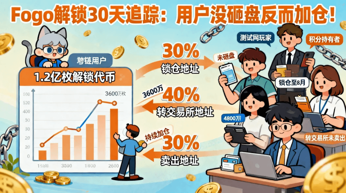 一个月前,我扒了Fogo三月份要解锁的那1.2亿枚代币地址。当时很多人恐慌,说抛压要来了,价格要崩。我当时算了一笔账,说实际抛压可能只有240万美元,分散在两周里,对日交易量1500万的Fogo来说,可以忽略。