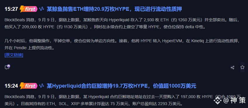 最近币圈的资金面那叫一个热闹,巨鲸就像个豪爽的大金主,在HYPE这儿疯狂“扫货”。9月9号那天,某巨鲸先后砸下1080万美元和1130万美元增持HYPE,这手笔,简直就是在币圈扔下了一颗“深水炸弹”。消息一传开,整个市场都沸腾了,大量资金像闻到血腥味的鲨鱼一样,纷纷涌向HYPE。