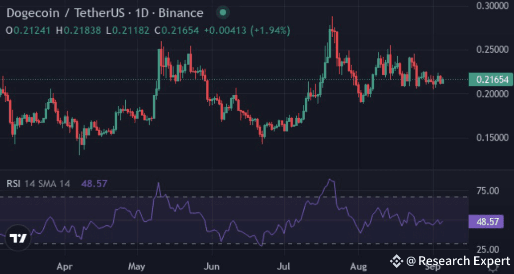 Over the past month DOGE is up 8.61%, and the 6-month score shows a 12.27% climb. The move lifted price above the 100-day average at $0.2147, turning that area into fresh support. Each dip toward $0.1889 has drawn buyers, keeping mid-term sentiment upbeat.