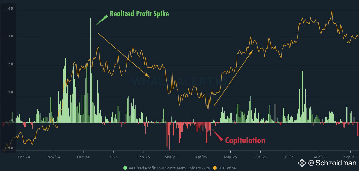 Sudden spikes in realized profit can hint at a potential price correction, as many investors lock in gains.