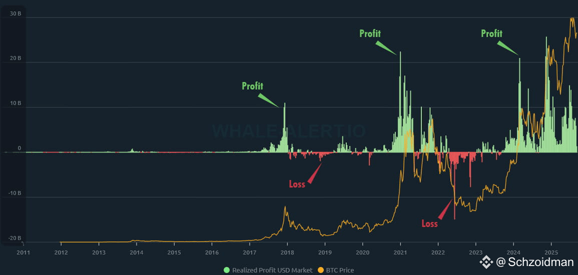 When analyzing $BTC , most traders look at price charts. But beyond the price itself, on-chain metrics can provide powerful insights into what investors are actually doing. One of the most valuable tools in this regard is the Realized Profit graph.