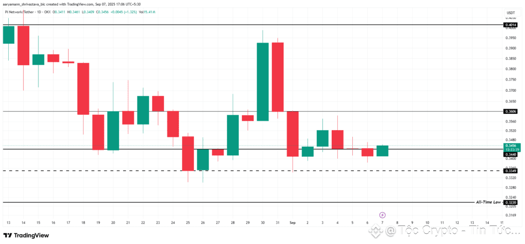 Cảnh báo tâm lý hiện tại cho thấy kịch bản duy nhất có thể giúp đảo ngược xu hướng giảm của Pi Coin là một cú bật mạnh từ vùng hỗ trợ 0,344 USD, tạo điều kiện để giá hồi phục về mức 0,36 USD – vùng kháng cự ngắn hạn. Tuy nhiên, triển vọng cho khả năng này là rất mong manh, khi dòng vốn mới đang thiếu vắng và sự kết nối với Bitcoin – yếu tố dẫn dắt thị trường – đang ngày càng xa cách.
