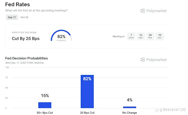 Prediction markets are leaning heavily toward easing. Polymarket bettors are assigning an 82% chance of a 25-basis-point cut on Sept. 17, leaving only slim odds for a deeper move or no change. Beyond that, October expectations are fractured, with nearly even probabilities for another cut or a pause. That divergence explains why volatility, though absent now, is unlikely to stay that way.
