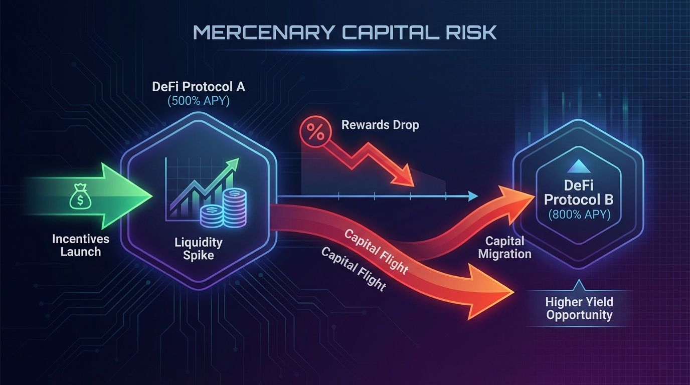 When markets turn volatile, protocols dependent on this capital face sudden liquidity shortages. This can trigger cascading effects such as slippage spikes, failed liquidations, and loss of user confidence.