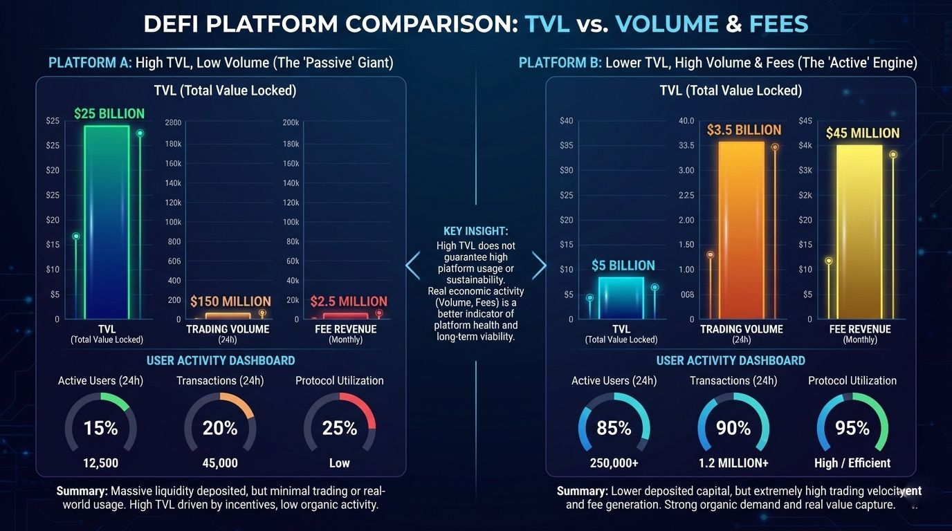 During the DeFi boom, TVL emerged as a simple way to measure growth. The logic was straightforward. More capital locked meant more trust and more usage.