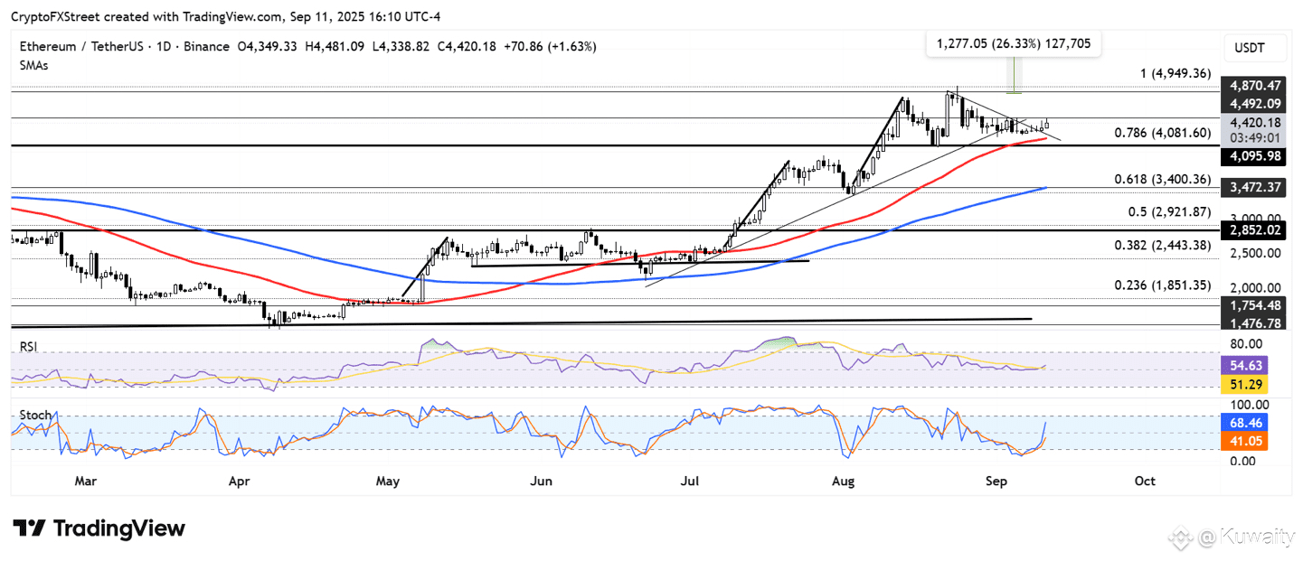 توقع سعر الإيثريوم: تظهر مؤشرات الإيثريوم الفنية علامات صعودية خفيفة بينما تعيد اختبار مقاومة 4500 دولار