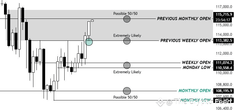 Resistance: A major supply zone exists between $116,000 and $121,000. Breaking through this resistance could open the door for a rally toward new all-time highs.