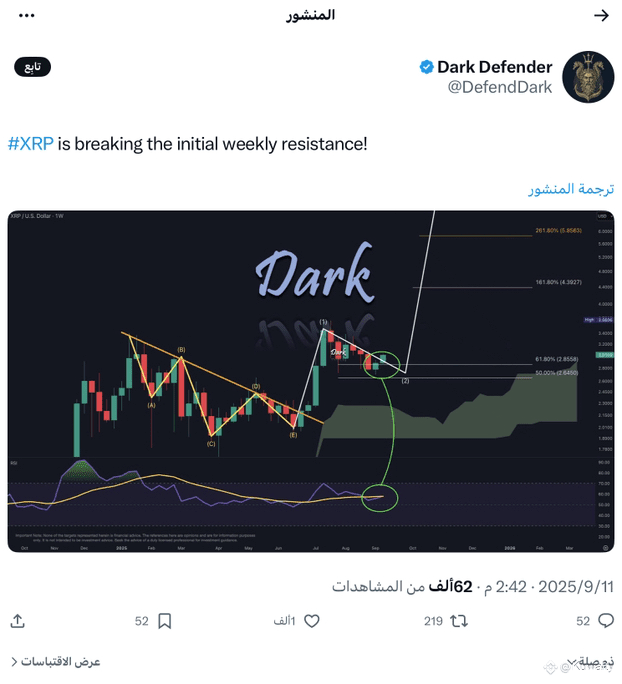 اخترق سعر $XRP مستوى مقاومة أسبوعي رئيسي، متجاوزا خط اتجاه تنازلي استمر لأشهر.