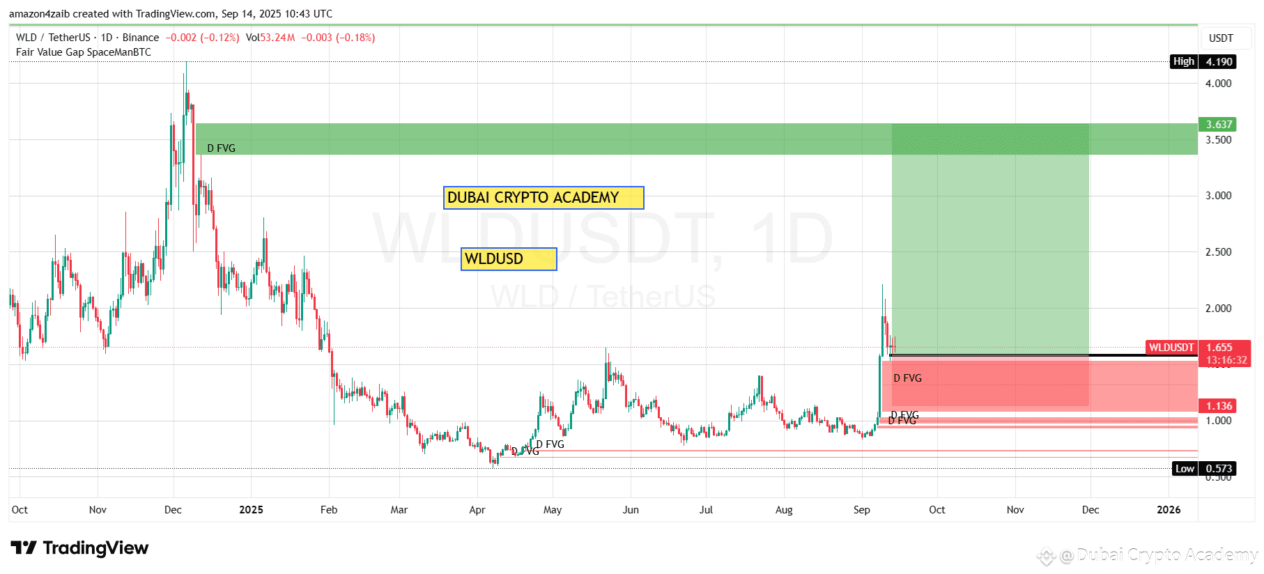 Worldcoin (WLD) has been showing strong momentum and just filled a Daily Fair Value Gap (FVG) around the $1.6 zone. This area is acting as a demand level, giving bulls a chance to take control.