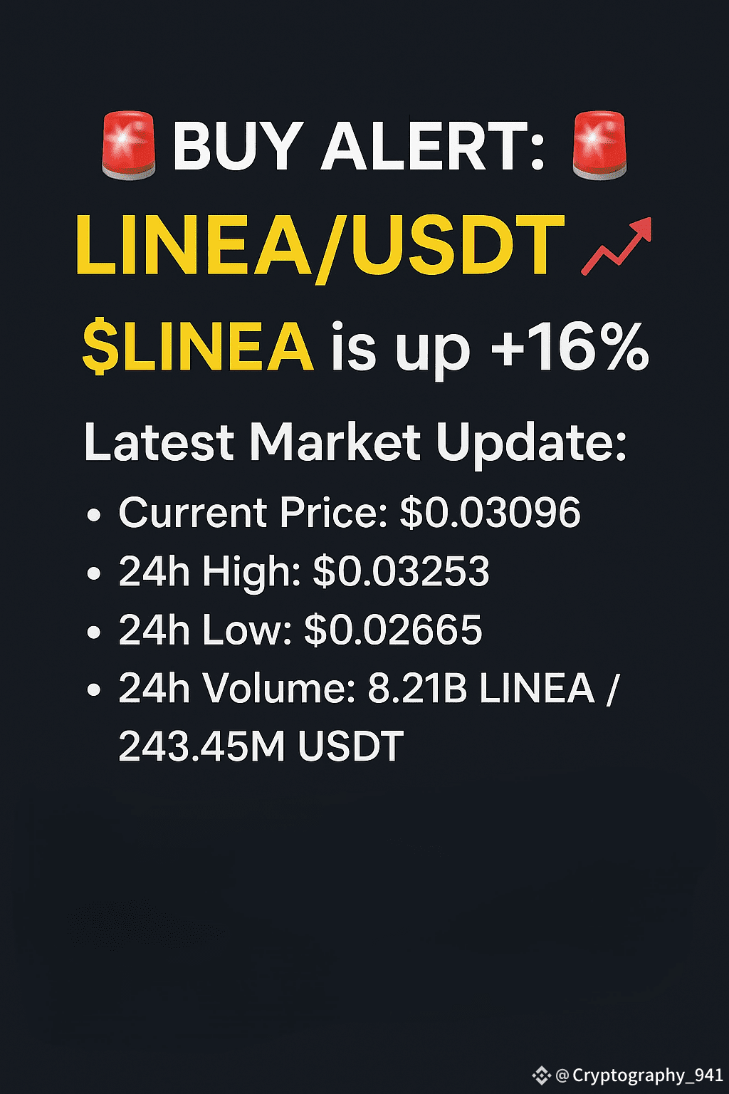 $LINEA is maintaining strong bullish momentum today with +16% gains! Bulls are still in control, and trading activity is heating up. 🔥