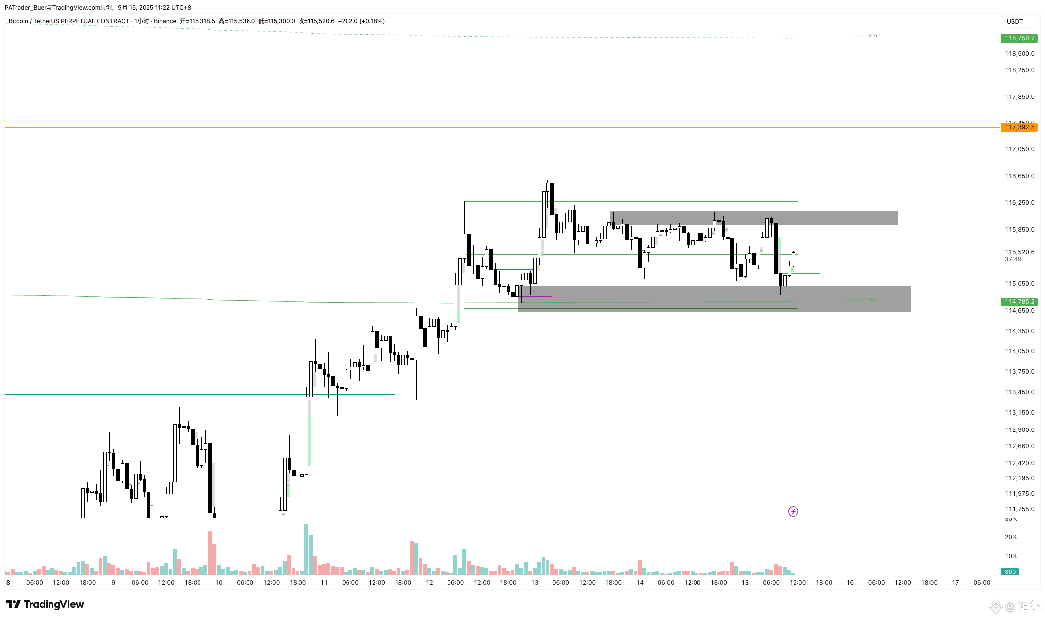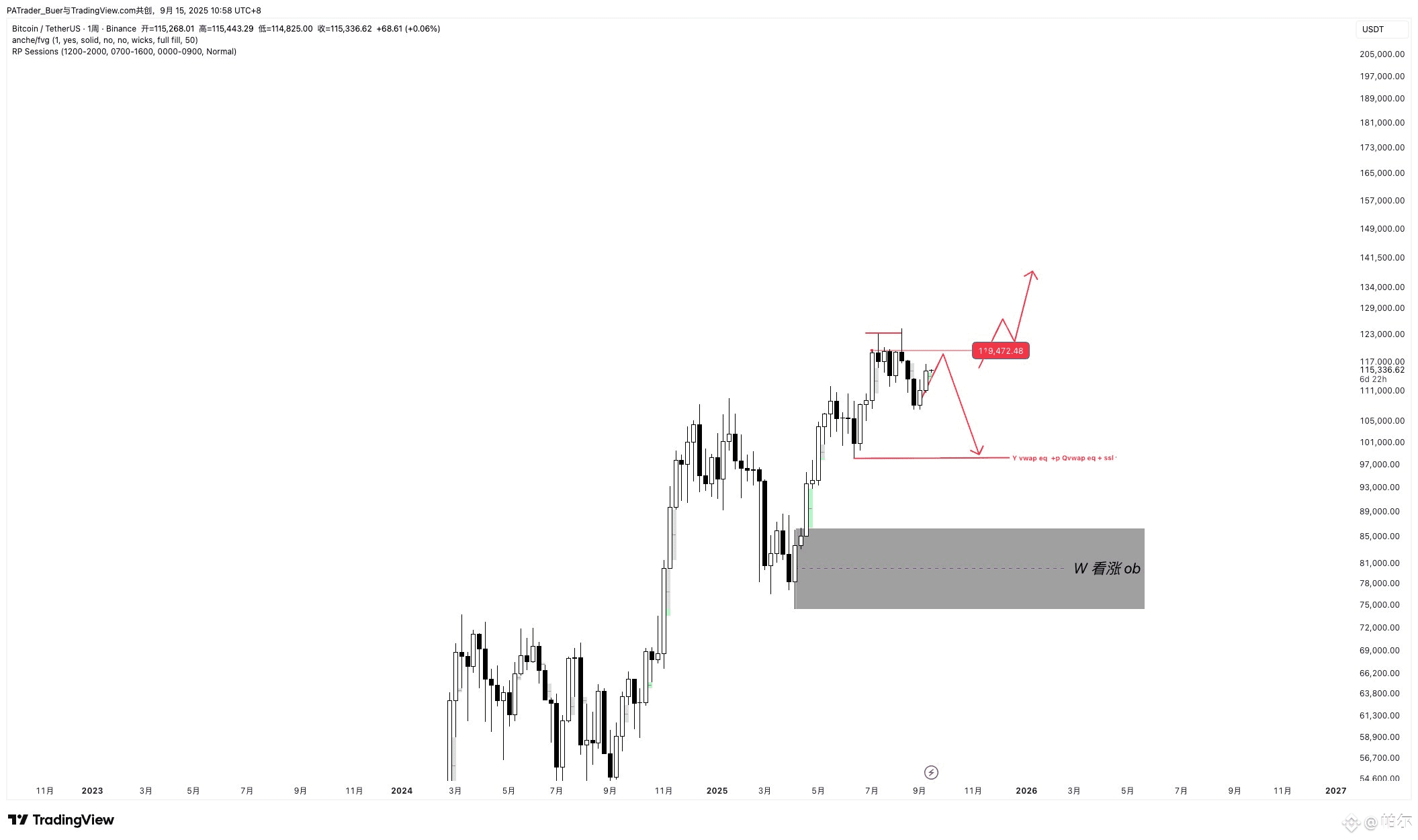 这里认为不破 115 看涨ob 就是向上看,这是也是上方日线讲的eq 位置。