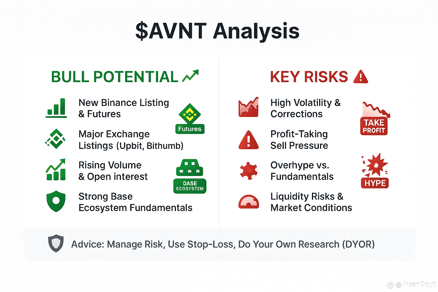 There are clear factors behind AVNT's trend: new listings, futures launch, volume, "smart money" interest, and the strength of the Base network. This mix makes it suitable for a temporary short-term bull run.