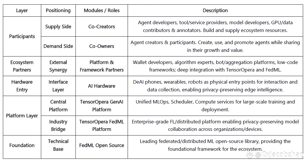 If FedML represents the technical core, providing the open-source foundations of federated learning and distributed training; and TensorOpera abstracts FedML’s research outcomes into a commercialized, full-stack AI infrastructure—then ChainOpera takes this platform capability on-chain.