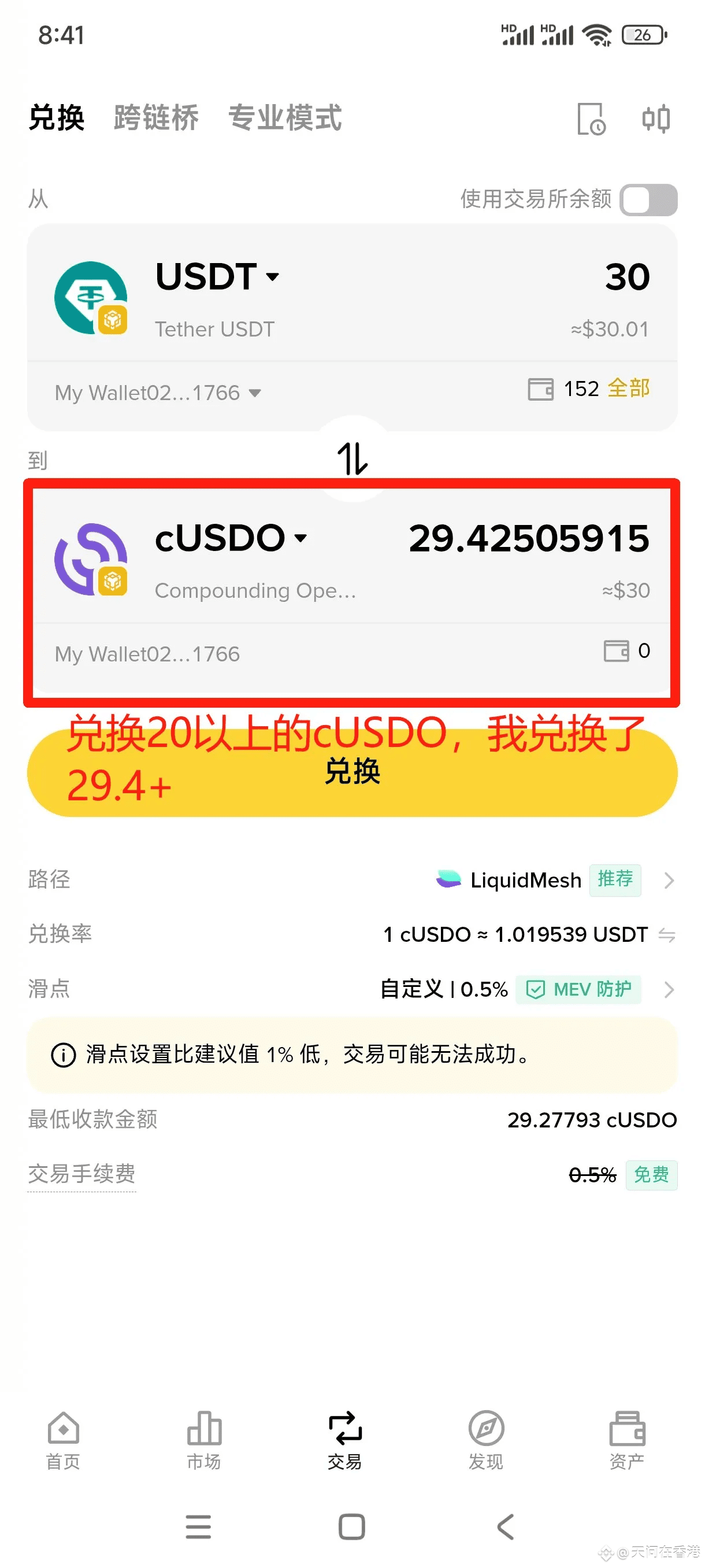 任务3️⃣兑换20个USDC→cUSDO