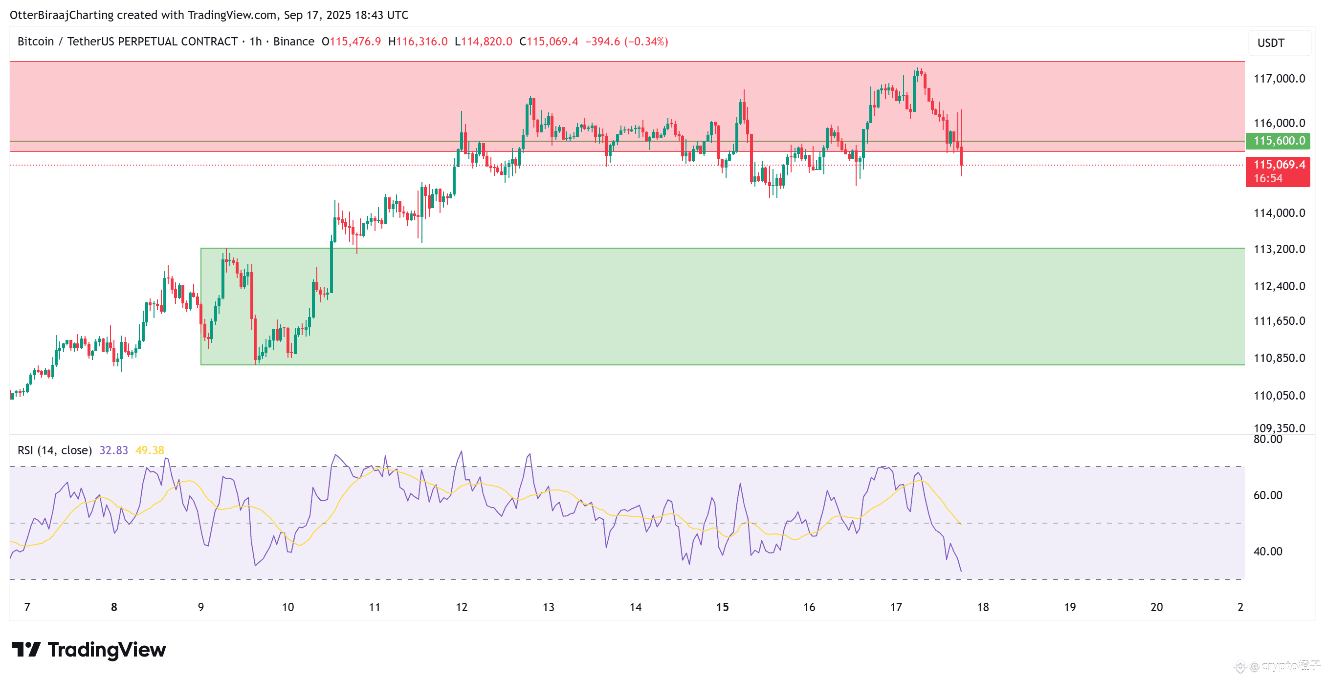 即时支撑位:113,700美元(50日EMA)