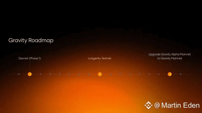Gravity L1 Mainnet (Q4 2025): full launch as an independent L1 with PoS, restaking, and Reth-based EVM execution.