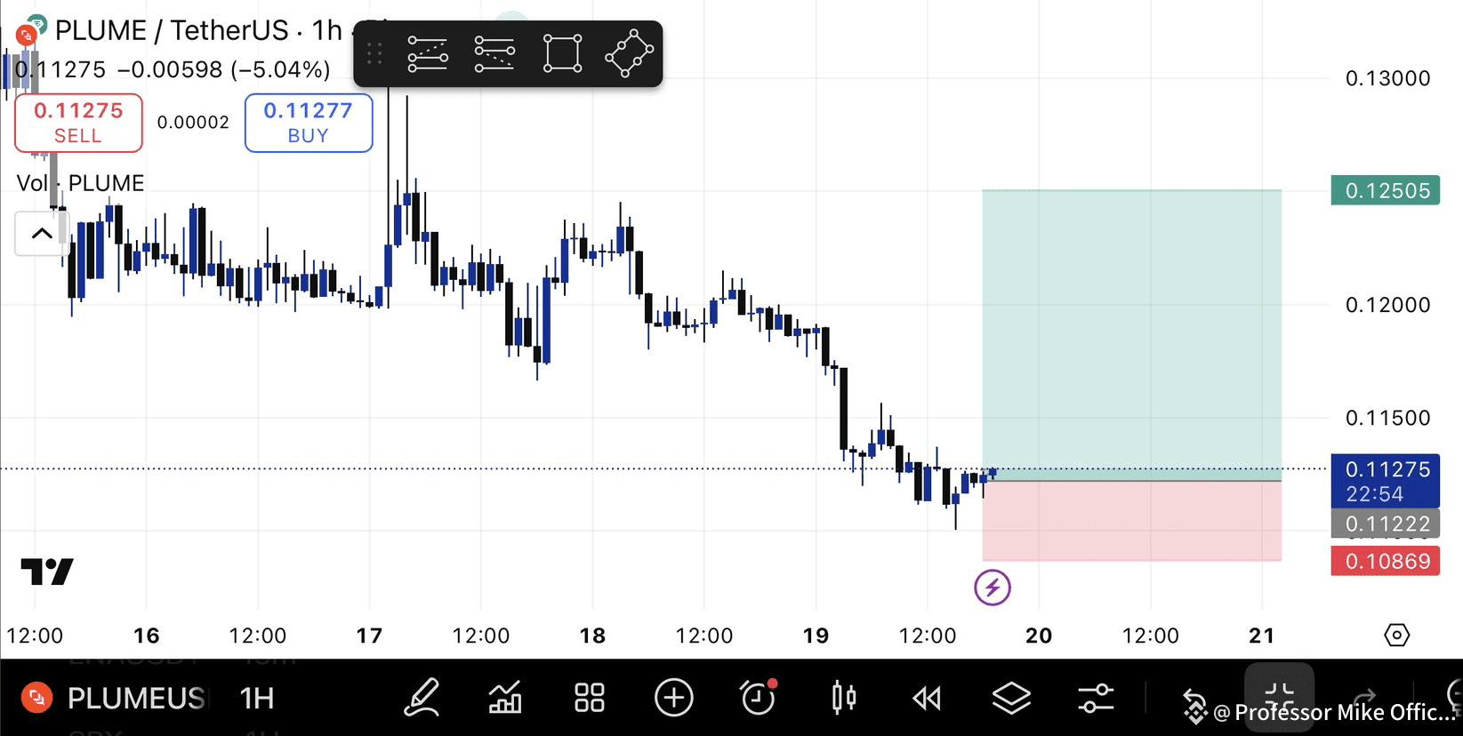 The chart shows that $PLUME is consolidating after a period of correction, preparing for a potential bullish reversal. With buy levels around 0.1122 – 0.1127 USDT and a target at 0.1250 USDT, traders are eyeing this range as an attractive opportunity. The setup reflects strong recovery potential as momentum builds up in the short term.