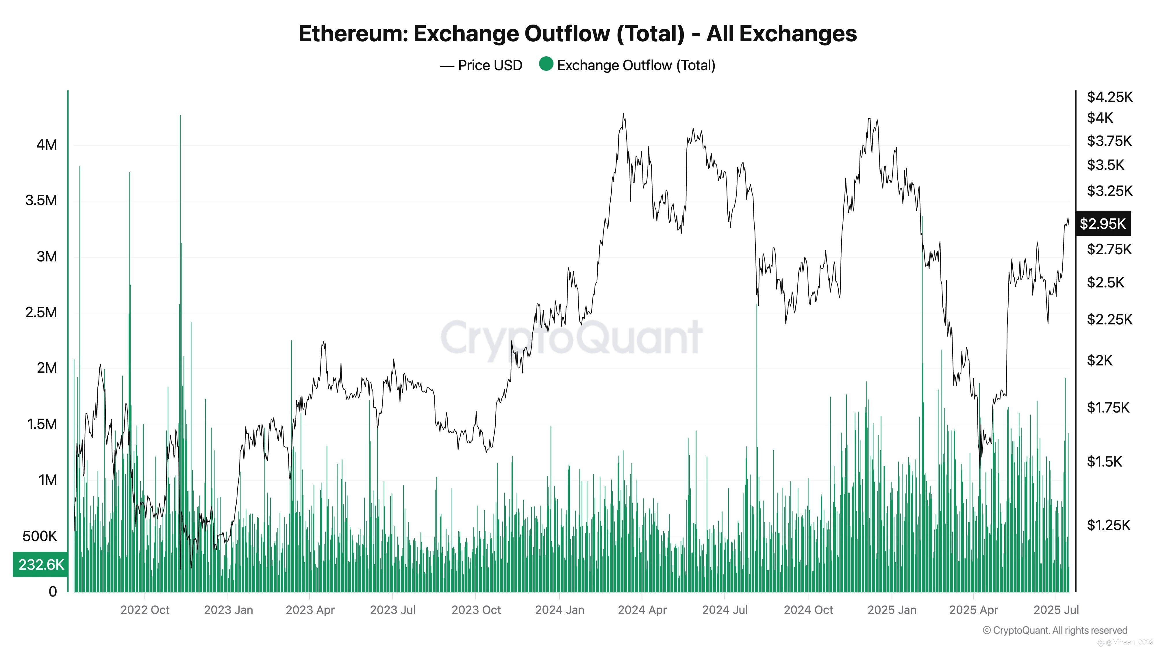 Earlier this year (Feb–March), heavy inflows to exchanges pushed prices down. Since June, however, the pattern flipped. Between 200k and 400k ETH are leaving exchanges daily, suggesting large holders prefer cold storage or staking. That move indicates long-term conviction rather than a readiness to sell, which generally leans bullish for price action.