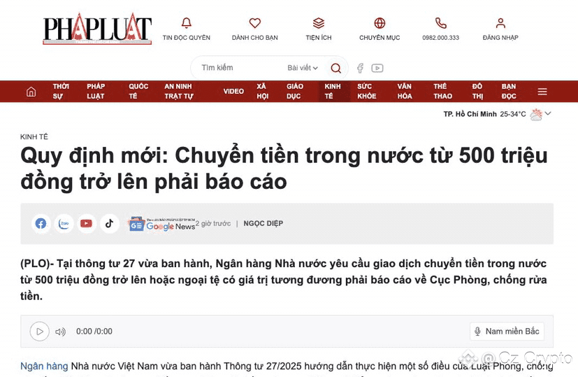 🚨 Chuyển tiền trên 500 triệu sẽ bị “soi” kỹ hơnNgân hàng Nhà nước vừa ra Thông tư mới:🟥 Bất kỳ giao dịch chuyển tiền trong nước từ 500 triệu trở lên (hoặc ngoại tệ tương đương) đều phải báo cáo Cục Phòng, chống rửa tiền.🟥 Với giao dịch quốc tế, ngưỡng báo cáo chỉ từ 1.000 USD thôi.🟥 Bắt đầu áp dụng từ 1/11/2025 (có giai đoạn chuyển tiếp đến hết 31/12).Với anh em crypto, điều này đồng nghĩa là:+ Cash in/out USDT ↔ VND số lớn sẽ bị giám sát kỹ hơn.+ Ngân hàng/trung gian có thể hỏi thêm giấy tờ, mục đích giao dịch…+ OTC và P2P chắc chắn cũng sẽ ảnh hưởng vì luồng tiền fiat – crypto bị kiểm tra chặt hơn.Anh em nào plan chốt lời hay bơm máu DCA thì lưu ý nhaa 🥹