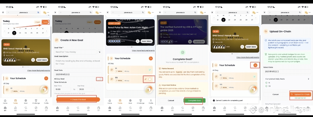 在日历页点 Create 建一个 Daily Beat(日目标)选择 All Day(全天目标) 并标记完成 点 upload 上链
