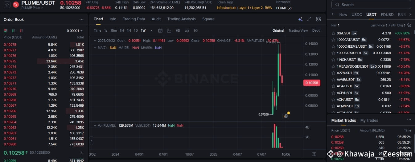 Current PLUME Price: ~$0.11 (live on Binance, down 5% in 24h)
