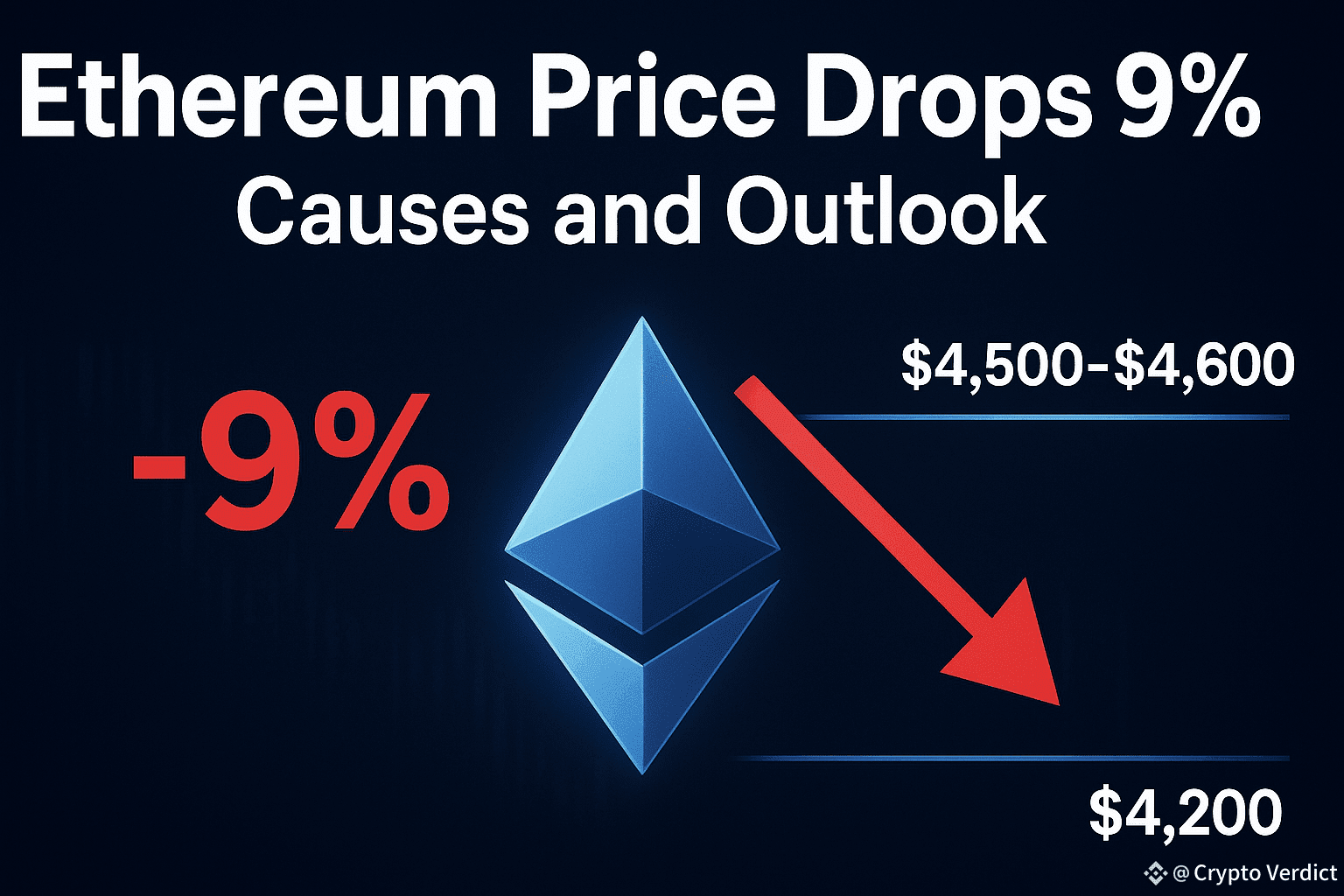 Ethereum$ETH has declined by nearly 9% as part of a broader crypto market downturn. This sharp fall reflects increasing volatility across digital assets, with Bitcoin and other leading cryptocurrencies also facing steep corrections. The decline highlights the vulnerability of crypto prices to market-wide risk sentiment and leveraged trading pressures.