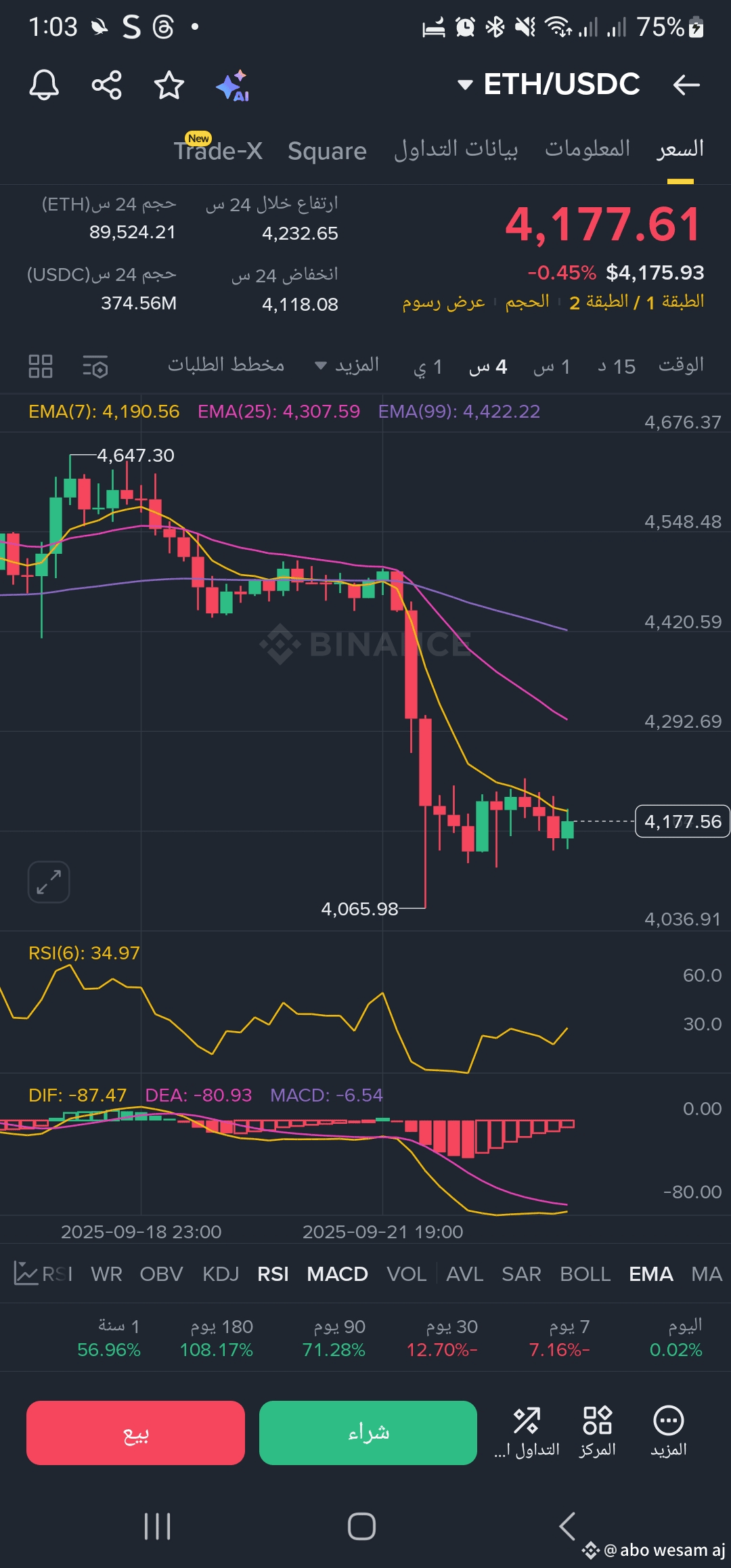 إذا بدك تبيع أو تدخل شورت → كل ارتداد صغير ممكن يكون فرصة، لكن لازم تحط Stop Loss فوق EMA25 أو EMA99.