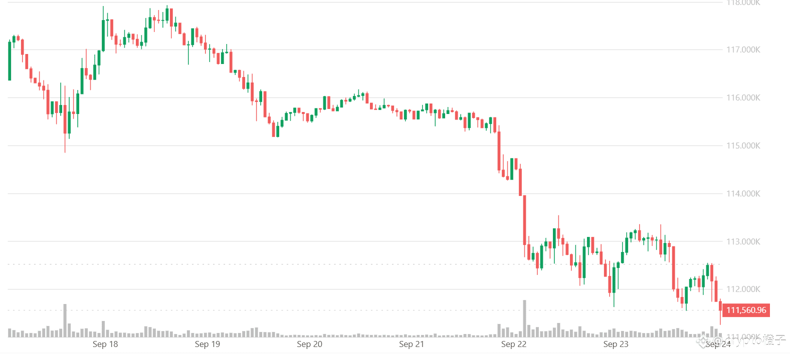 周三(9月24日)进入亚市盘中,比特币继续在11.2万美元下方低位盘整,此前美联储主席鲍威尔称利率仍具“适度限制性”,为进一步降息敞开大门。