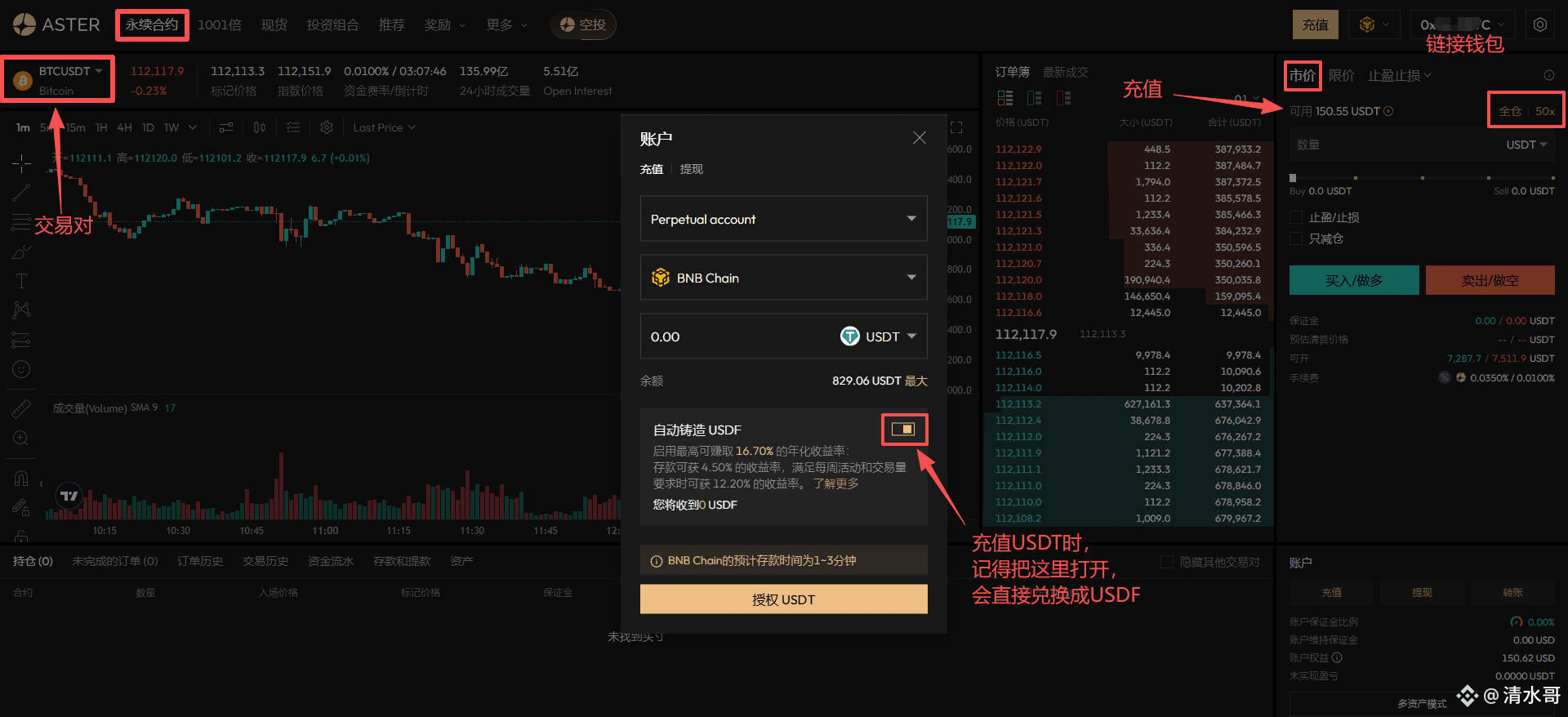 2、 充值保证金进来时,直接兑换成USDF,USDF会有分数的加成。