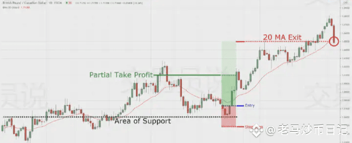 你在反向压力介入之前平仓一半头寸。剩下的一半,你可以采用追踪止损来顺应趋势。