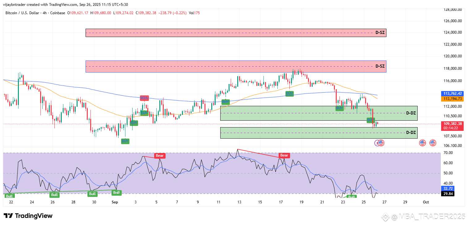Demand‑reaction long: If 109.10k–108.90k holds and prints a strong reversal with RSI reclaim >50, aim for 109.75k → 110.20k–110.50k, invalidate on an hourly close <108.90k.