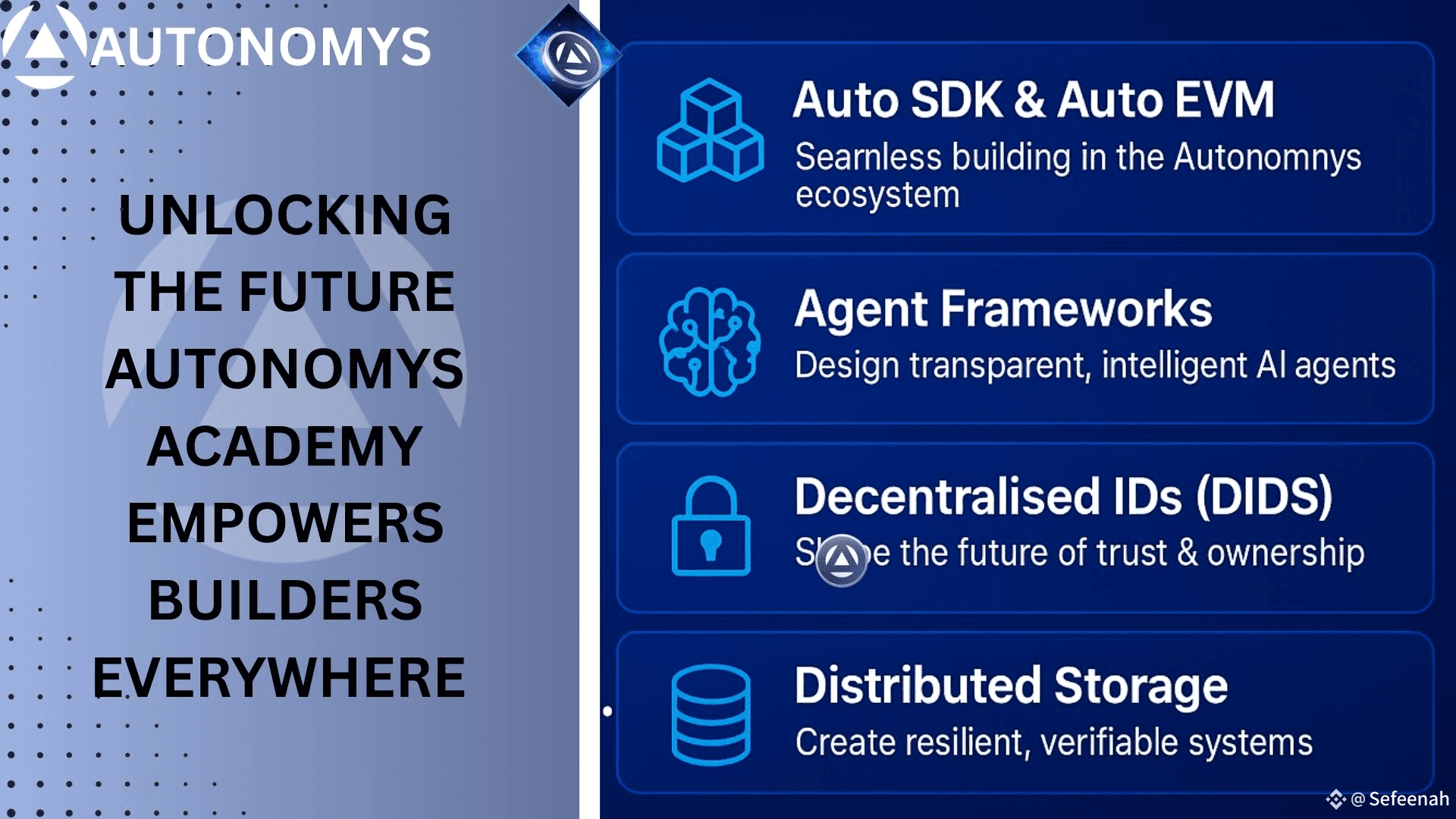 Hey everyone! I’m thrilled to invite you into the world of #Autonomys Academy a place where Web3 builders and AI dreamers come to bring next-gen applications to life. Through the Academy & Developer Hub, you’ll gain hands-on experience with tools that turn visions into reality. Here are three powerful learning areas you’ll master, and how they map to real Web3 building: