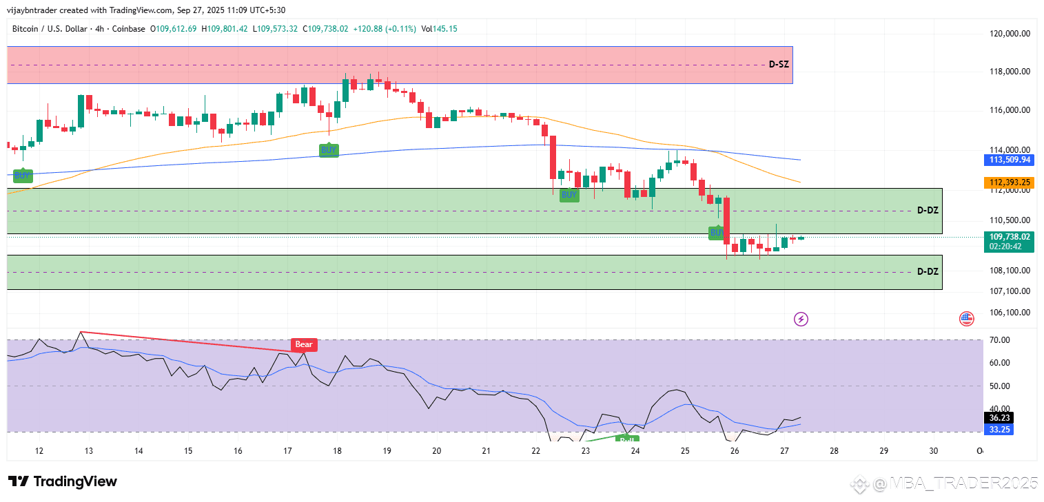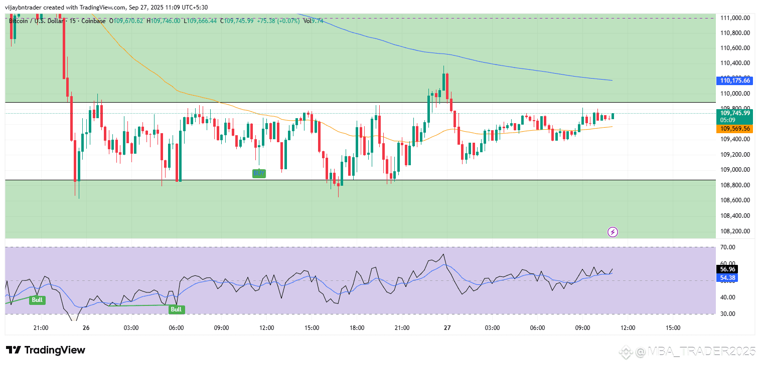 Range: Price is churning inside ~109.9k–109.4k micro‑range atop the intraday floor, with RSI oscillating around 50, implying a mean‑reversion chop until a decisive break occurs.