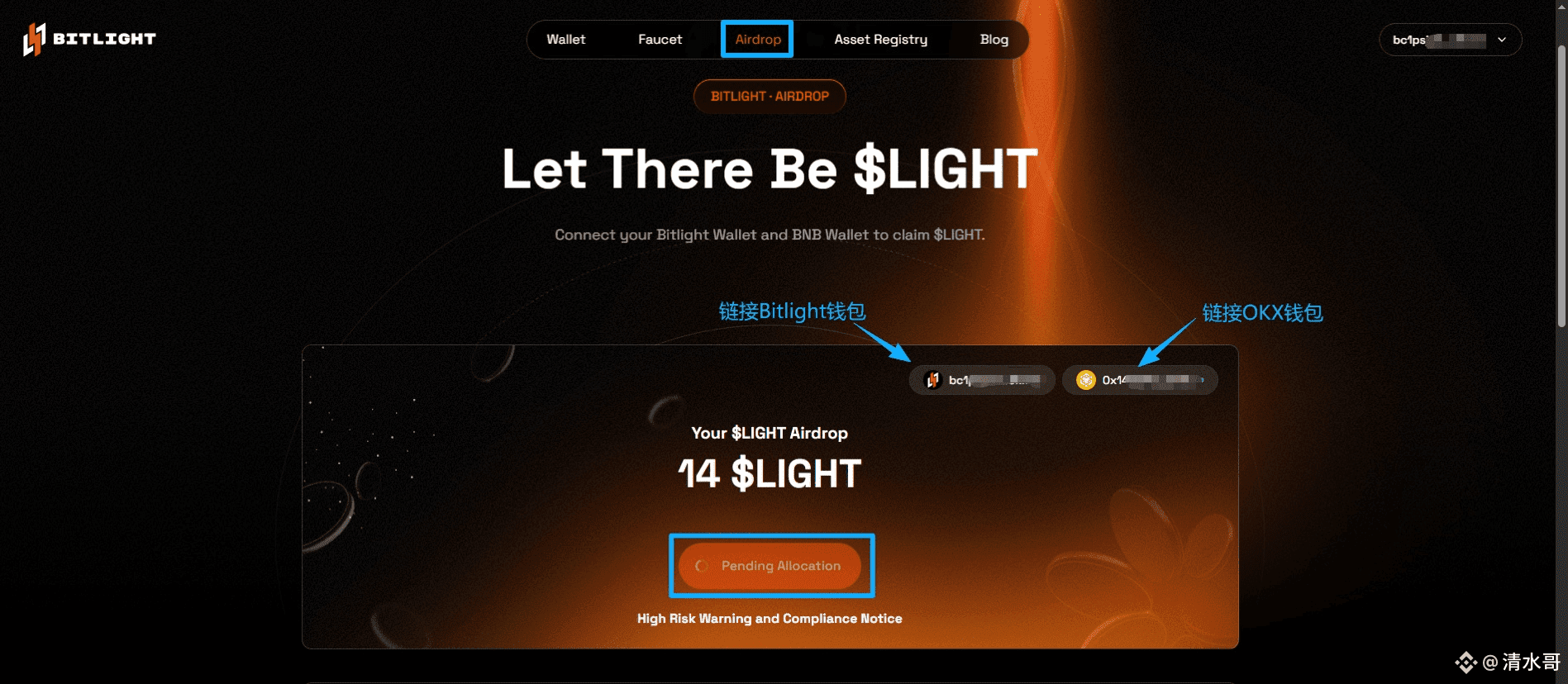 查询链接:https://bitlightlabs.com/airdrop