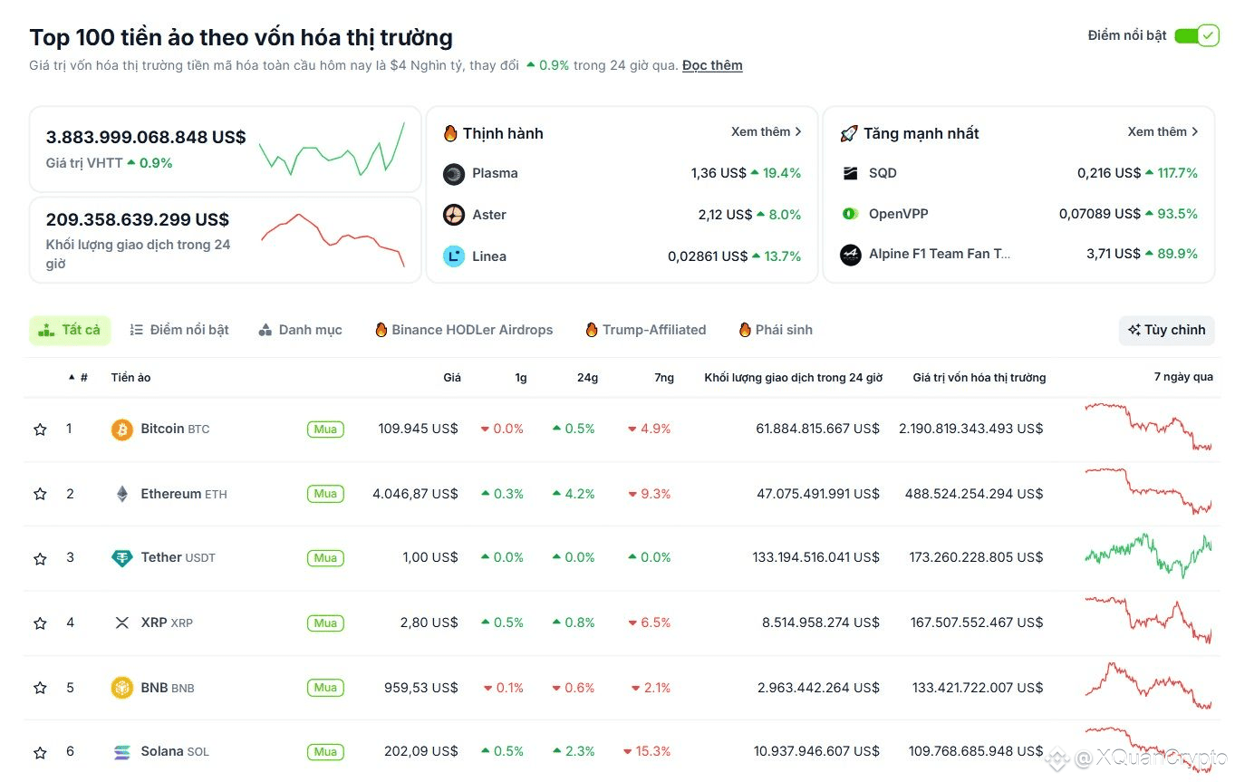Sáng ngày thứ Bảy (27/9), sắc xanh quay trở lại với thị trường Crypto sau chuỗi ngày điều chỉnh mạnh vừa qua. BTC (Bitcoin) áp sát mốc kháng cự quan trọng 110.000 USD, trong khi ETH (Ethereum) vượt mốc 4.000 USD chỉ một ngày sau khi thủng mốc hỗ trợ này. Trong bài viết này, Block24 sẽ giúp các bạn có cái nhìn toàn cảnh về thị trường Crypto trong ngày 27/9/2025 nhé!