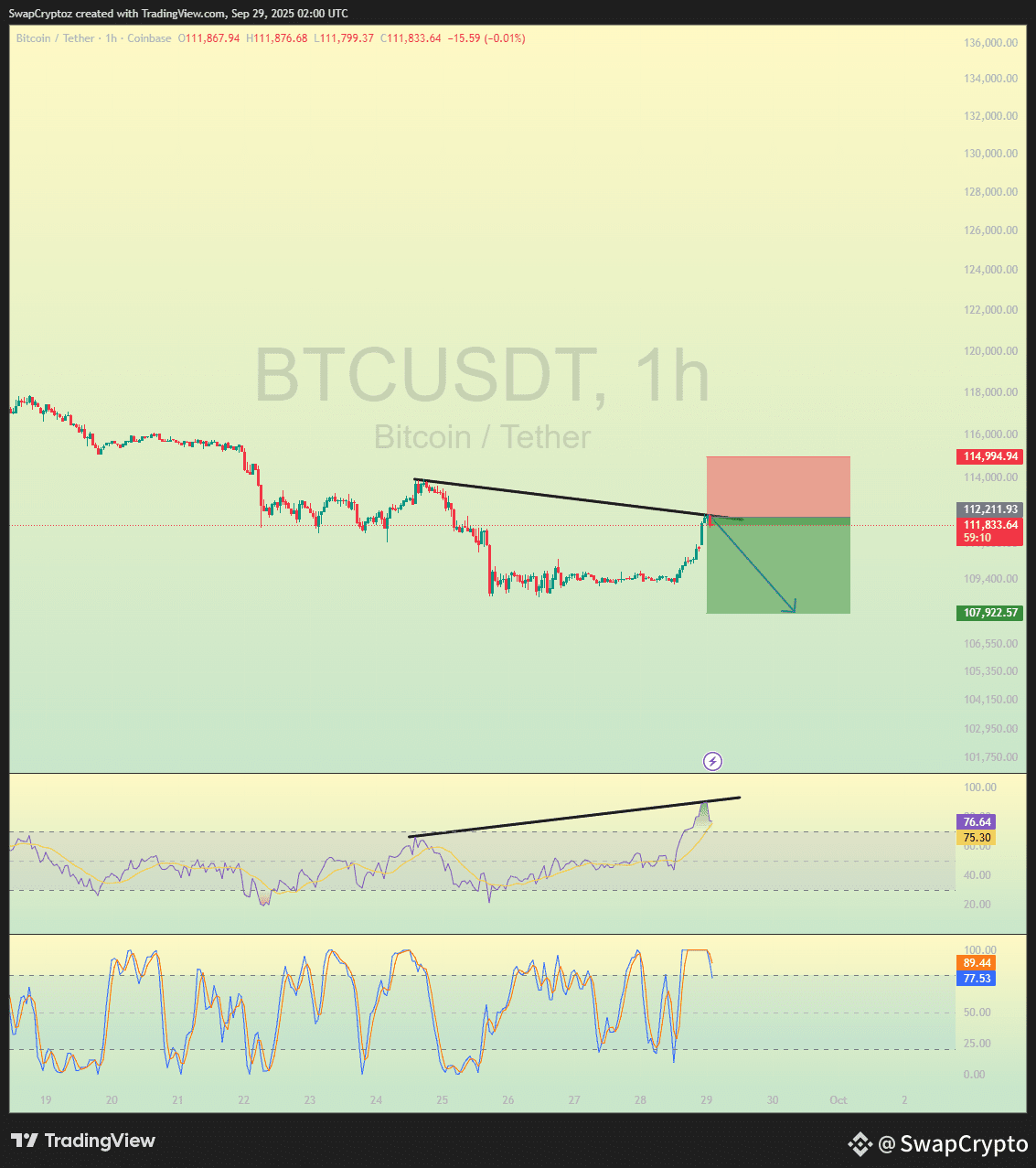 There is Bitcoin trying to rise but facing strong resistance. Indicators suggest weakness, so price may drop soon if sellers stay stronger than buyers.