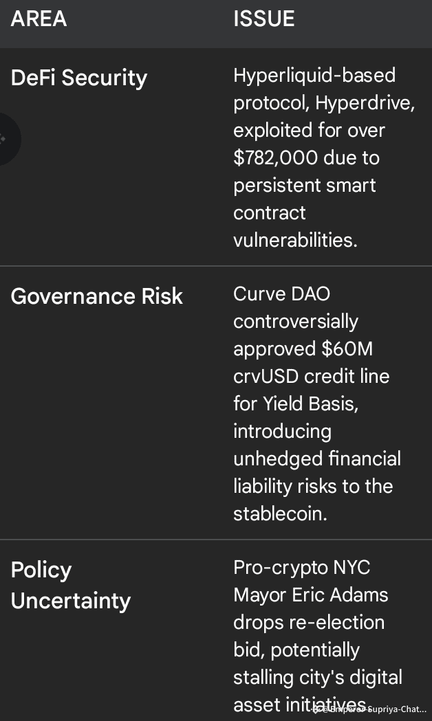 Governance Friction: Curve Finance founder Michael Egorov’s new Yield Basis protocol was granted a controversial $60 million credit line in crvUSD by the Curve DAO, raising warnings about unhedged financial liability and systemic risk to the stablecoin.