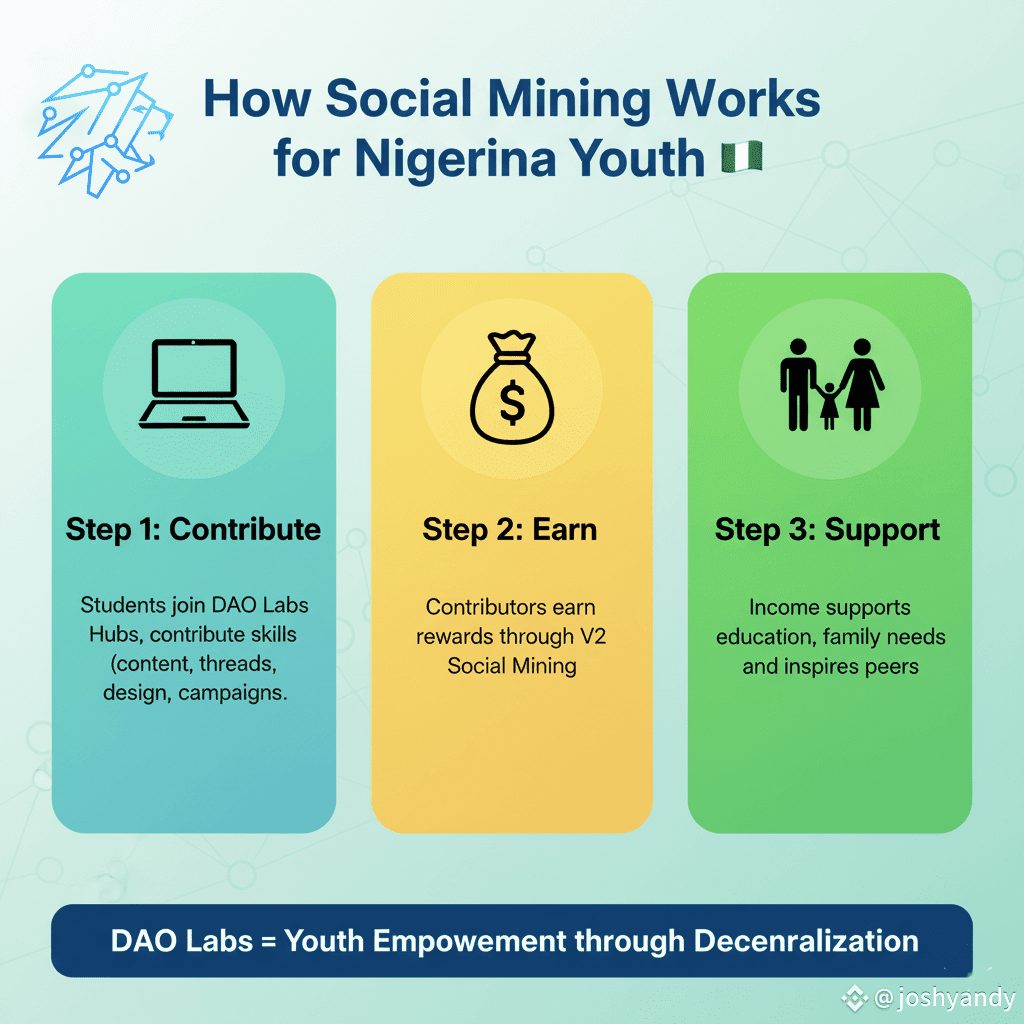 Every Nigerian member of the Daoversian Community can see firsthand how DAO Labs empowers young people who were once overlooked by traditional job markets. Using the Social Mining model in V2, students and youth groups are finding not only purpose but also a steady stream of income.