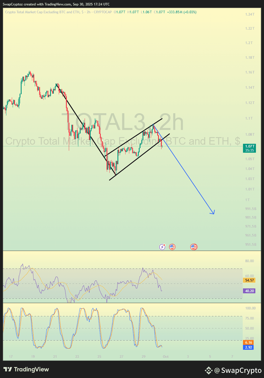 This chart shows the total market cap of altcoins breaking down from a Bear Flag pattern. If it keeps falling, most altcoins could face heavy drops, LINK coin also .