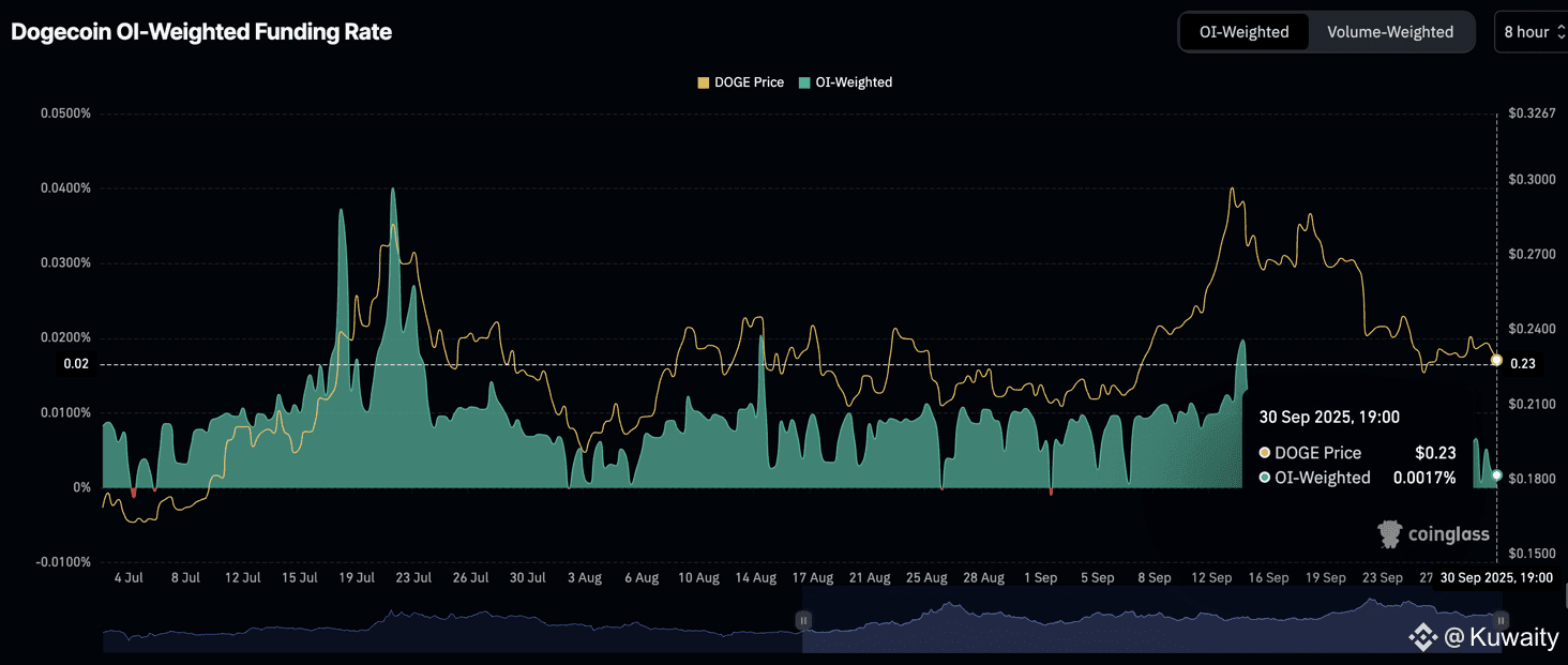 نسبة التمويل الموزونة حسب OI لدوجكوين | المصدر: CoinGlass