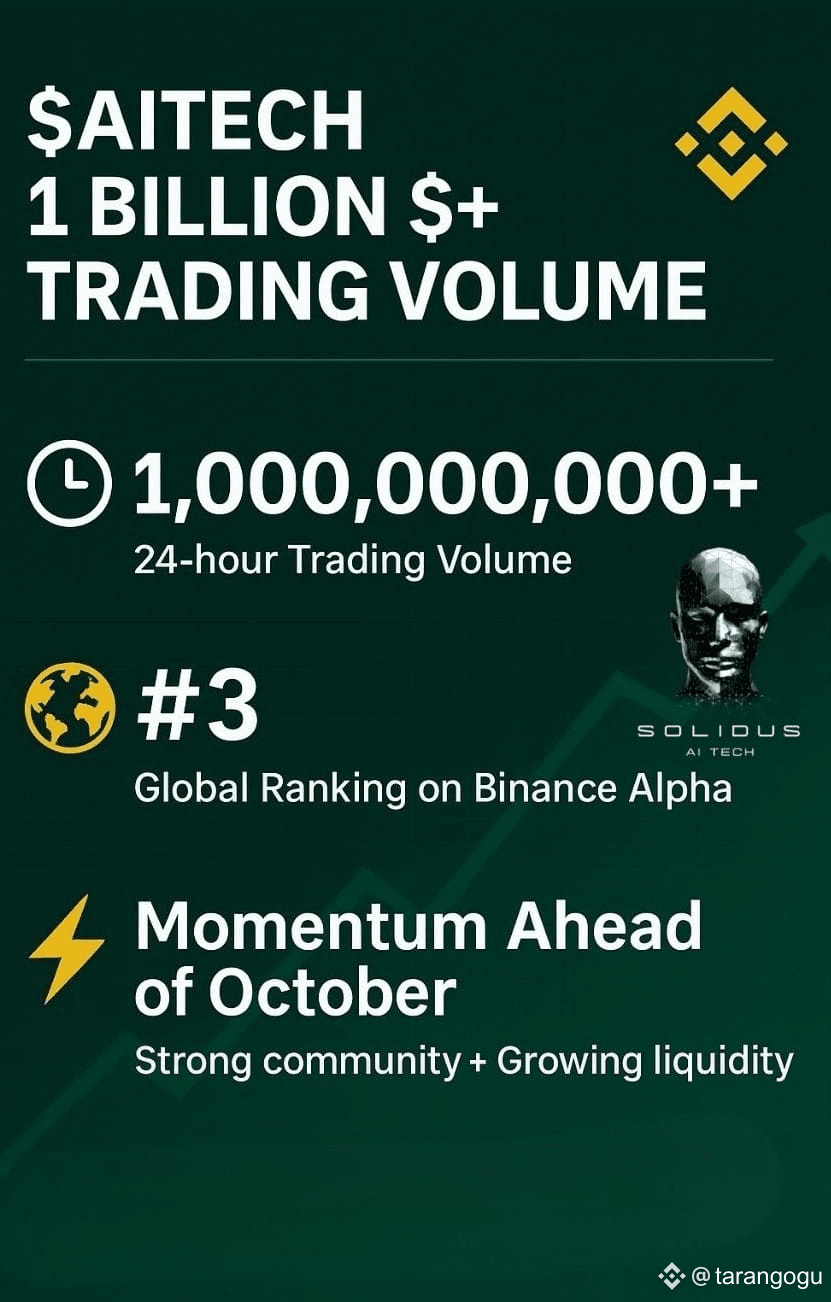 AITECH has reached a remarkable milestone in the crypto world. According to the official announcement, it achieved the 3rd place global ranking on Binance Alpha, recording over $1 billion in trading volume in just 24 hours.