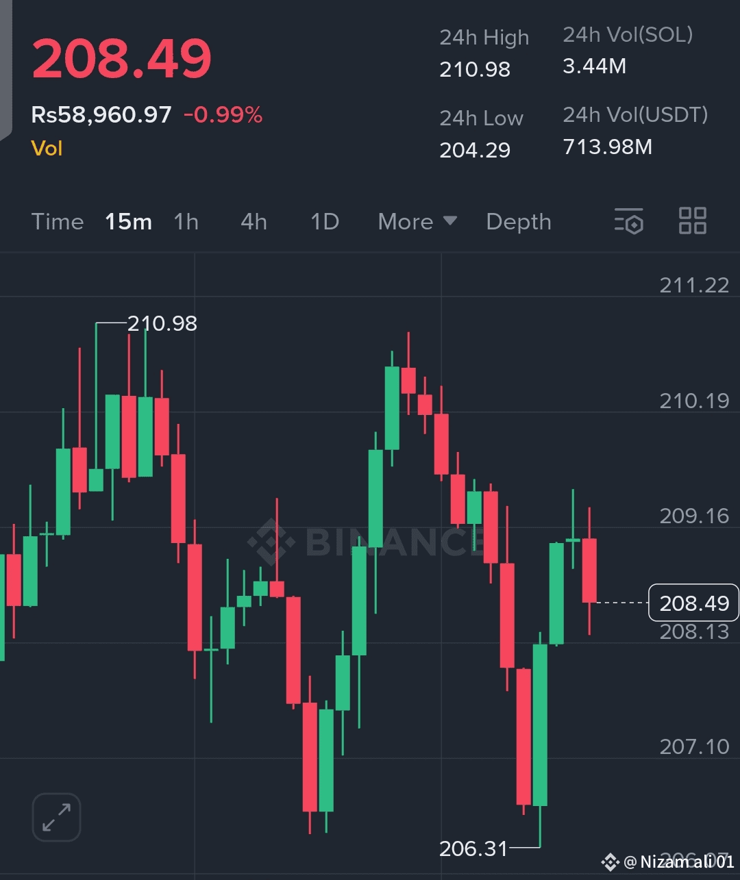🔻 Support Zone: $204 – $200 (agar ye break hua toh neeche aur girawat aasakti hai)