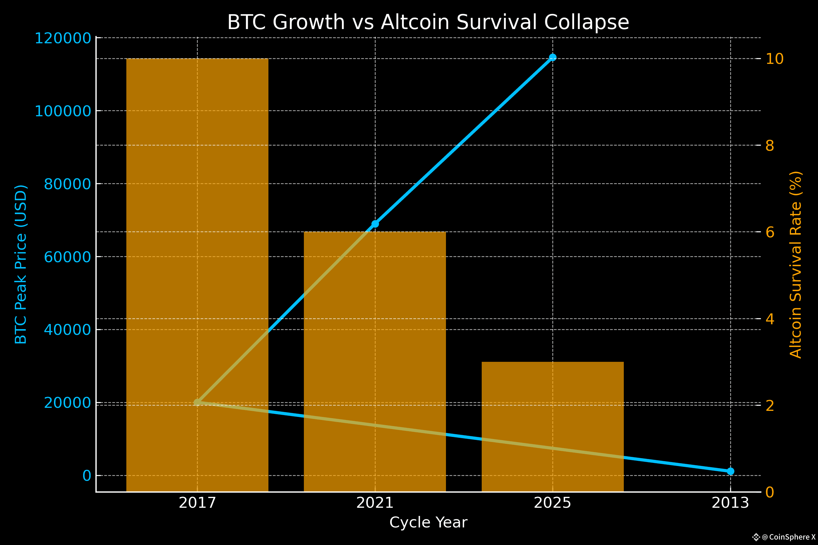 Only 10% of 2017 alts survived into 2021. By 2025, that number dropped to just 3%. Each cycle wipes out yesterday’s “blue-chips.” Narratives shift, liquidity flows elsewhere, and retail is left holding bags of forgotten projects.