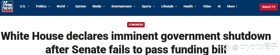 由于美国政府将于美国东部时间午夜关门,加密货币市场的反弹在周二(9月30日)基本停滞。据美国福克斯新闻当地时间周二晚间最新报道,由于美国参议院未能通过联邦机构拨款法案,白宫已正式宣布政府即将关门。