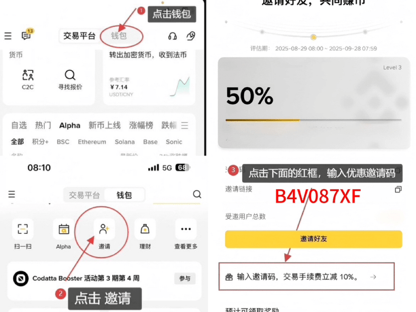 第二步点击输入邀请码,输入 然后确认绑定关系,会享受手续费享受九折以上优惠: