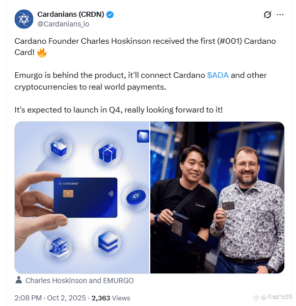¡Tenemos la llegada inminente de la Tarjeta Cardano! El fundador Charles Hoskinson recibió la primera Tarjeta Cardano (#001) 🤯, y su lanzamiento oficial, esperado para el cuarto trimestre de 2025, es el desarrollo más importante para la utilidad real de ADA. Esto no es hype, es infraestructura.